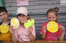 В послеобеденное время, в отрядной беседке, была организованы и проведены конкурс и выставка детских рисунков " Мой смайлик самый веселый". Ребята приняли активное участие в конкурсе и играли на свежем воздухе.