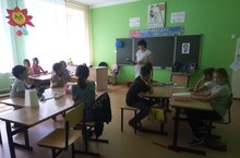 После завтрака была проведена Минутка здоровья на тему «Лесные опасности. Зеленая аптечка: первая помощь при укусах насекомых». Во время занятия с ребятами были рассмотрены фотографии с кратким описание из брошюры "Лекарственныне травы Татарстана"(Татпотребсоюз) и проведена работа по карточкам-рисункам "Зеленая аптека"(матерал взят из фонда школьной библиотеки). Далее были проведены: репетиция девиза отряда, речёвки и песни лагерного отряда; беседа на тему экологии " Берегите лес от пожара!"с повторением правил поведения в лесу во время походов и экскурсий; проведена игра " Найди клад", где ребята по маршруту-"карте" путем ответов на вопросы определяли направление к следующему пункту назначения .