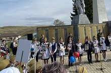 8 нче май көнне авылыбыз уртасында урнашкан "Билгесез солдат" мемориаль комплексында Җиңү көненә багышланган митингта укучылар да бик актив катнаштылар. Алар үзләре ятлаган шигырьләрне сәнгатьле итеп сөйләделәр,үз куллары белән ясаган открытка,чәчәкләрне бөйрәмгә килгән абый- апаларга,әби-бабайларга,,кунакларга тапшырдылар.