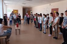 В 12:30 дали сигнал пожарной тревоги и мероприятие началось с эвакуации учащихся из здания школы. Эвакуация прошла организованно, в течение 1.5-2 минут дети были выведены из здания школы.