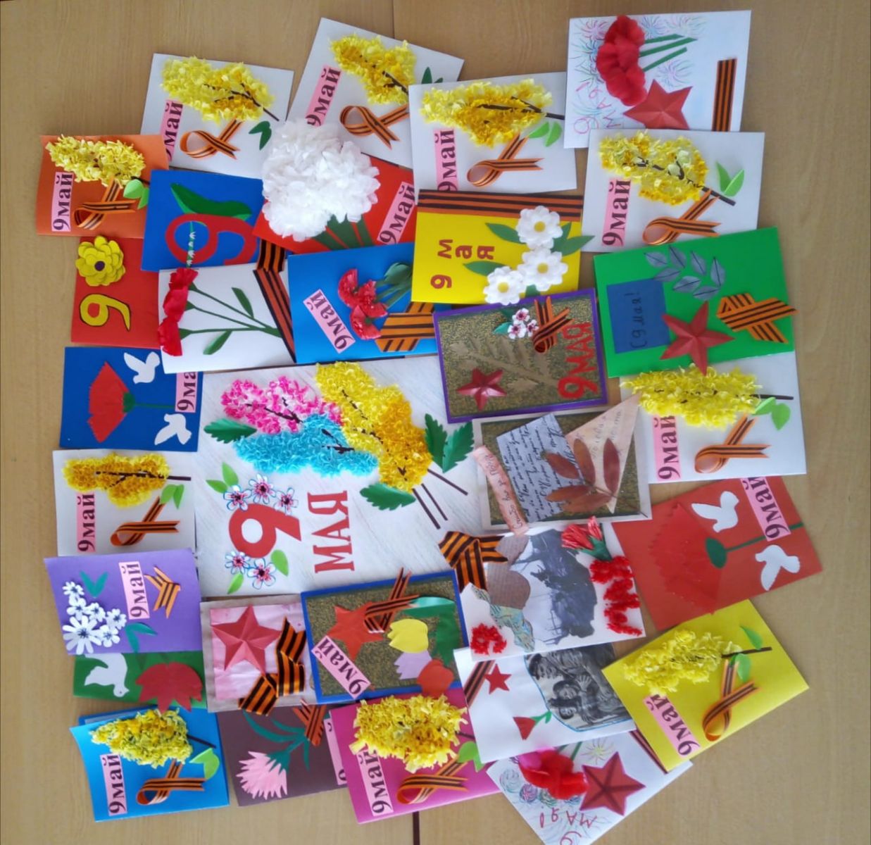 9 нчы май-Бөек Җиңү бәйрәмеә безенең мәктәп укучылары үз куллары белән ясаган открыткаларны ветеран укытучыларга ,сугыш елында туган әби-бабайларга тапшыралар һәм авылыбызда һәйкәл янында булачак митингка да чакыралар.