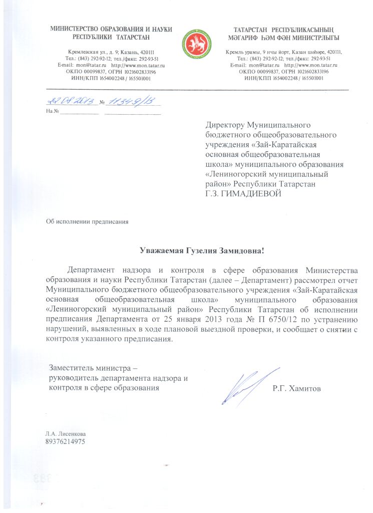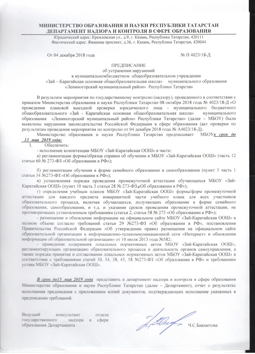 Муниципальное бюджетное общеобразовательное учреждение «Зай-Каратайская основная общеобразовательная школа» муниципального образования «Лениногорский муниципальный район» Республики Татарстан