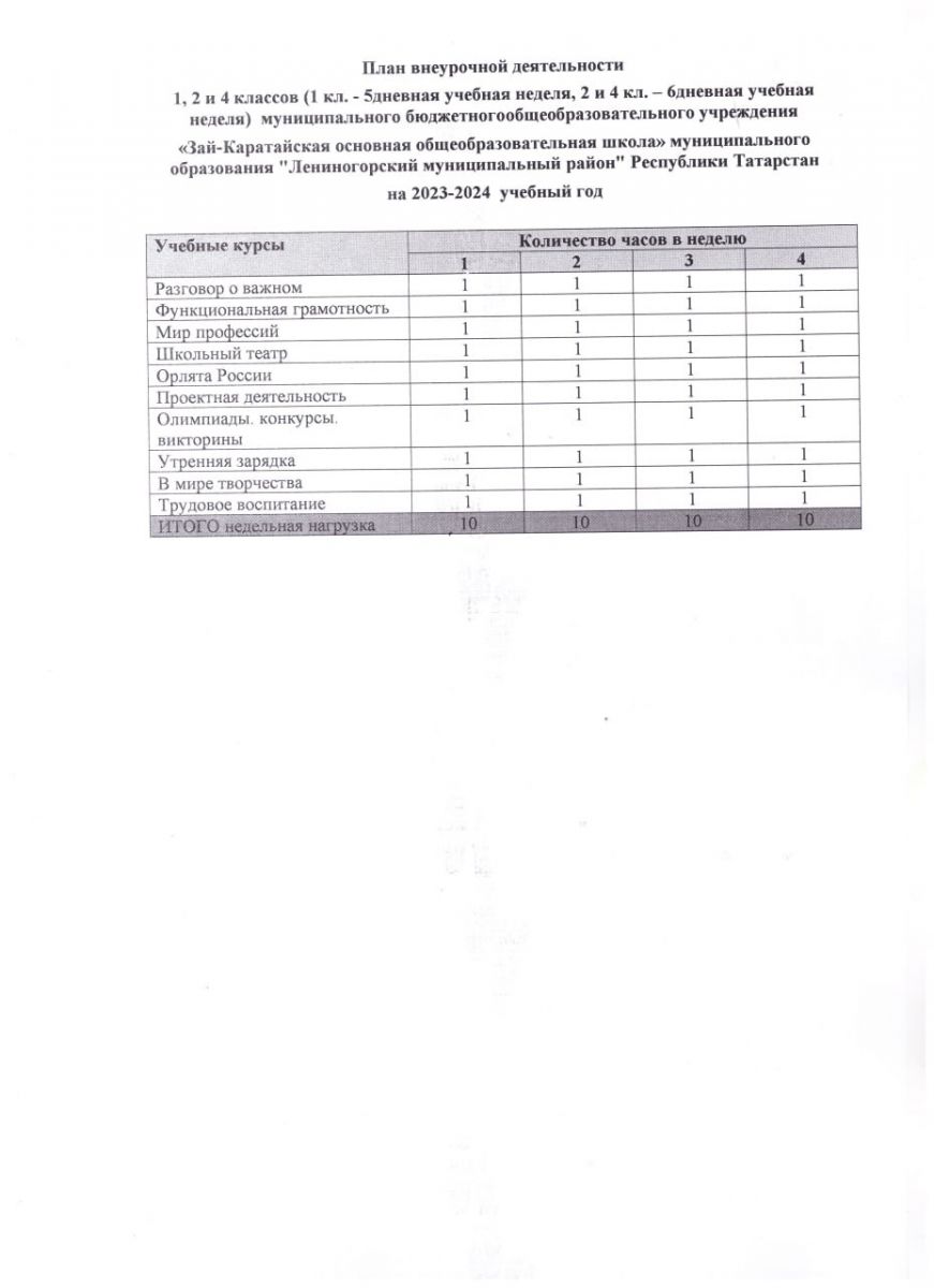 План внеурочной деятельности НОО