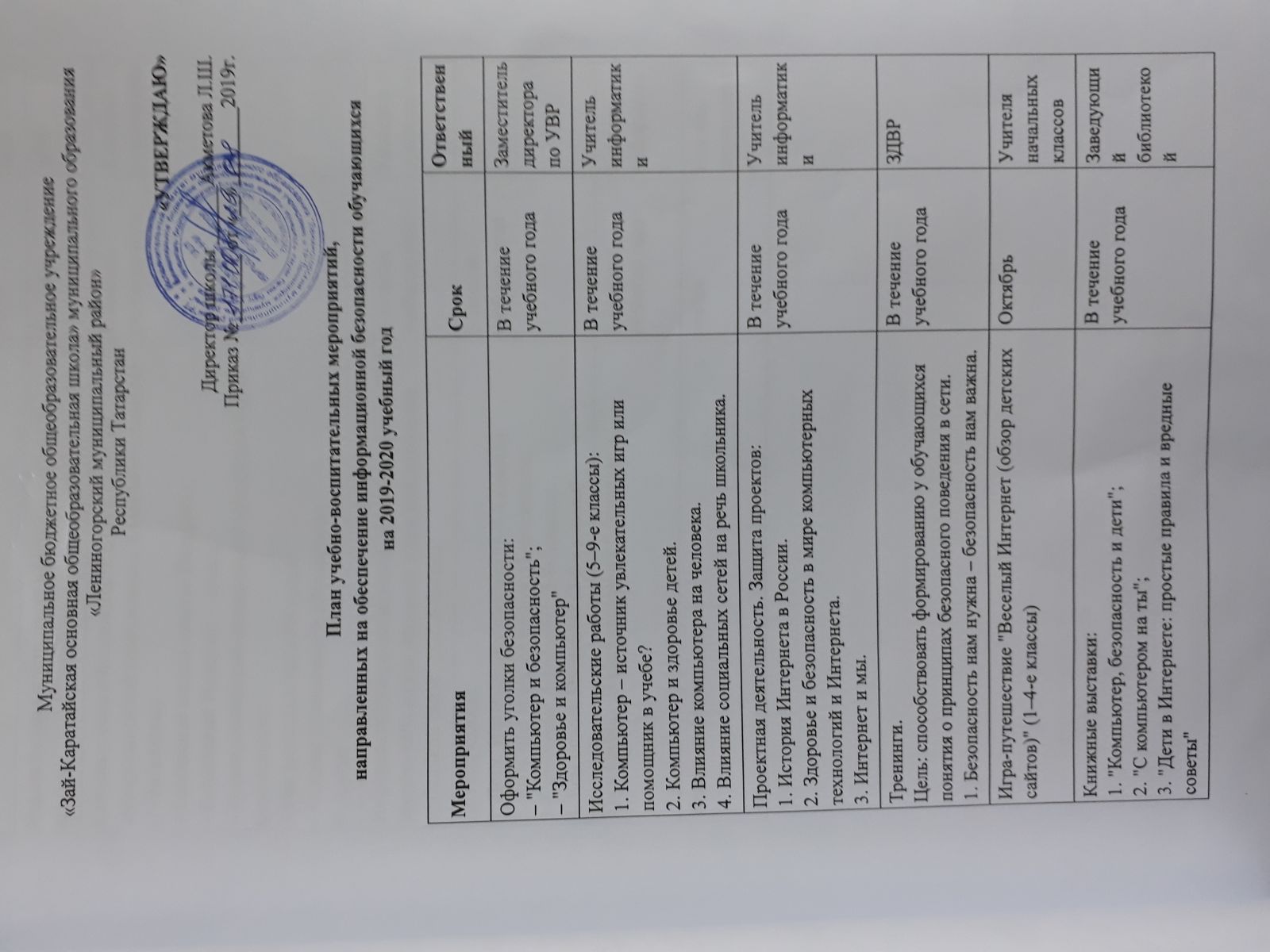 План мероприятий по информационной безопасности