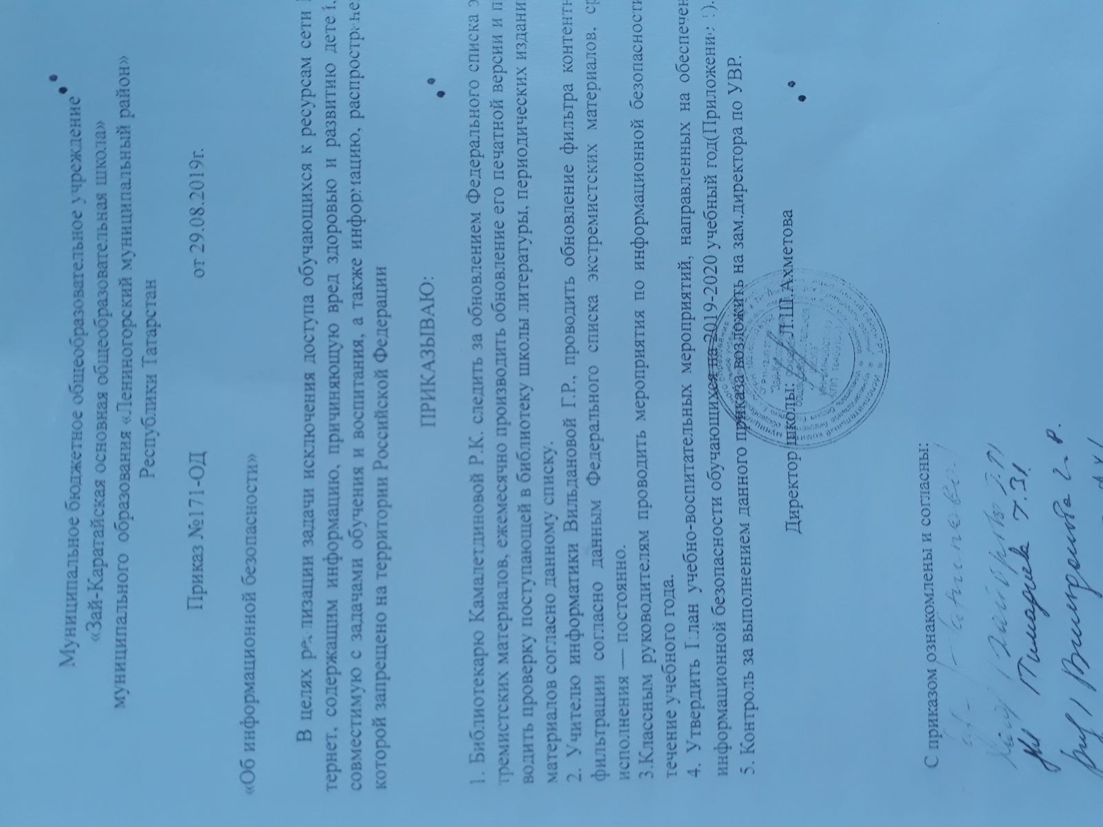 Приказ по информационной безопасности в школе