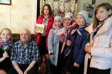 Активисты РДШ поздравили ветерана ВОВ Карпова А.М., с Днём добра (с Днём пожилых).