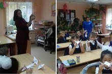 Педагог -организатор МБОУ"СОШ пос.им.25 Октября" Арсютова С.В. в рамках акции, приуроченной к Дню борьбы с терроризмом, провела с учащимися начальной школы мастер-класс по изготовлению белых журавликов в технике "оригами".