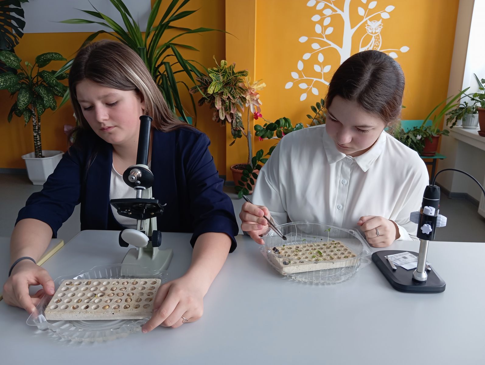21 января 2024 года в центре «Точка роста» на уроке биологии учащиеся 7 класса выполняли лабораторную работу по теме «Изучение условий прорастания семян». Ребята рассмотрели строение клетки под световым и цифровым микроскопами, сравнили результаты экспериментов и оформили выводы в рабочей тетради.Педагог Чихаздинская С.А., руководитель центра "Точка роста»