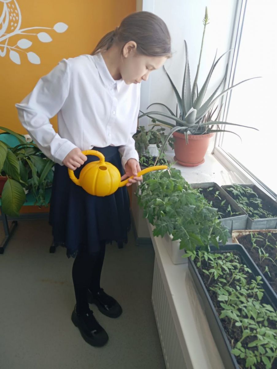 Учащиеся агрокласса проводят исследования по выращиванию томатов на подоконнике. Педагог Чихаздинская С.А.