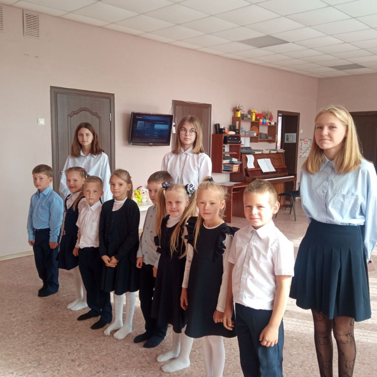 Опубликовано: 26.09.2023Сегодня в этот прекрасный сентябрьский денёк учащиеся 1 класса под шевством девочек восьмого класса сходили в родной детский садик "Солнышко", и поздравили свои воспитателейс грядущим праздником работников дошкольного образования
