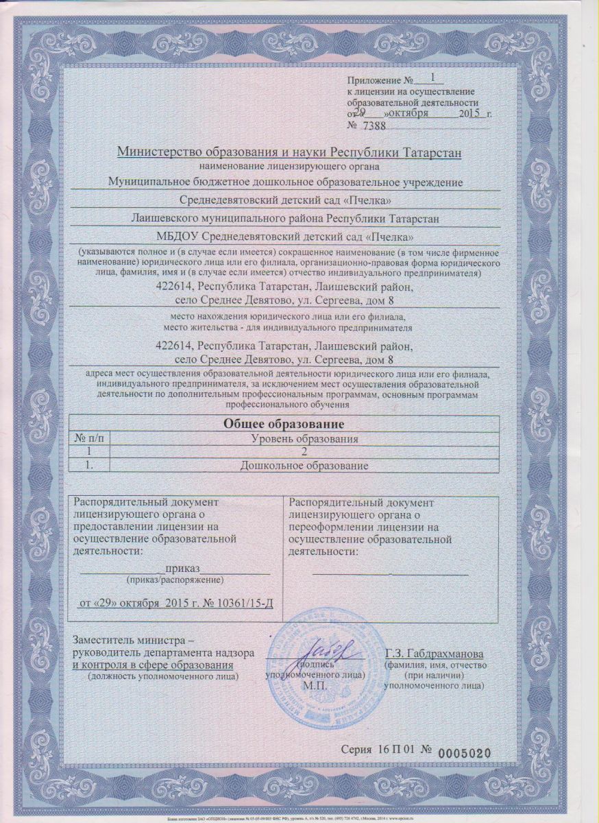 Муниципальное бюджетное дошкольное образовательное учреждение Среднедевятовский детский сад "Пчелка" Лаишевского муниципального района РТ