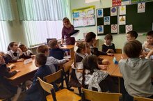 Сегодня во втором классе прошел открытый урок на тему:"Прописная буква в начале предложения и в именах собственных".Учитель Гайнуллина М.Г. умело построила урок, так что было интересно всем - и участникам, и зрителям!