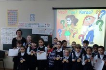 Сегодня в рамках декады начальных классов в школе состоялась интеллектуальная игра "Что? Где? Когда?" Классный руководитель 1 класса Сабирова Гульфия Киямовна организовала это мероприятие так, чтобы каждый учащийся смог проявить себя, свою смекалку и знания. Соревновались три команды: "Умники", "Звезда" и "Победа". Победила "Победа"! Все участники получили вкусные призы.