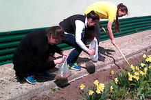 В рамках двухмесячника по благоустройству и очистке территорий учащиеся 10 класса вместе с учителем технологии Якуповой Р.Ф. посадили цветы около школы.