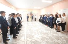 Начало учебной недели по традиции началось с торжественного выноса Флагов Российской Федерации и Республики Татарстан. Право вынести Государственные Флаги предоставили Ишмаковой Эмилии и Ашрапову Кариму , победителям Открытого чемпионата и Первенства г.Казани по Каратэ Кекусинкай.