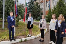 В нашей школе , как и во всех образовательных учреждениях нашей страны, учебная неделя началась с церемонии поднятия флагов Российской Федерации и Республики Татарстан. Честь поднять триколор выпала дежурному 7 А классу.