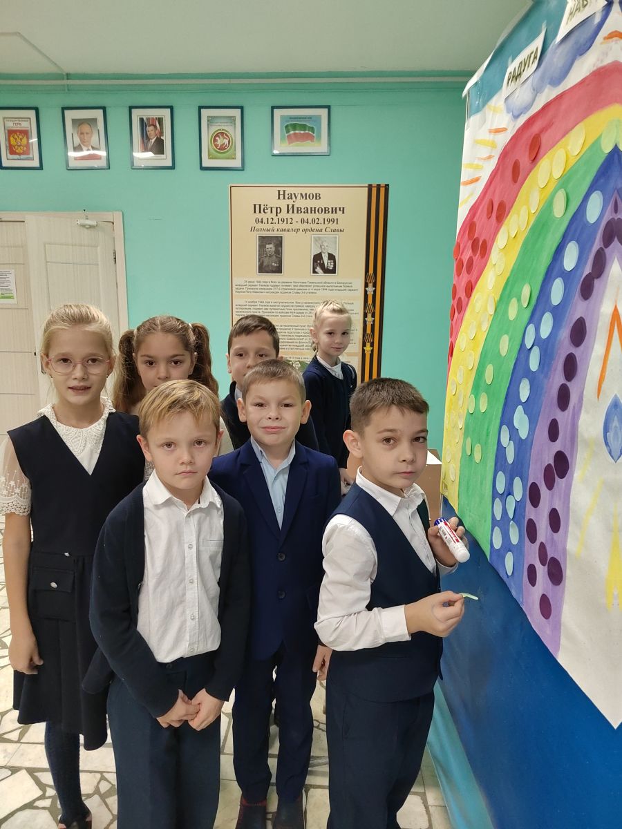 20 октября прошла акция «Радуга настроения». И обучающиеся, и педагоги очень активно, с интересом приняли участие. Всем детям и взрослым нужно было оценить при помощи цветных кружочков, с каким настроением они пришли в школу.