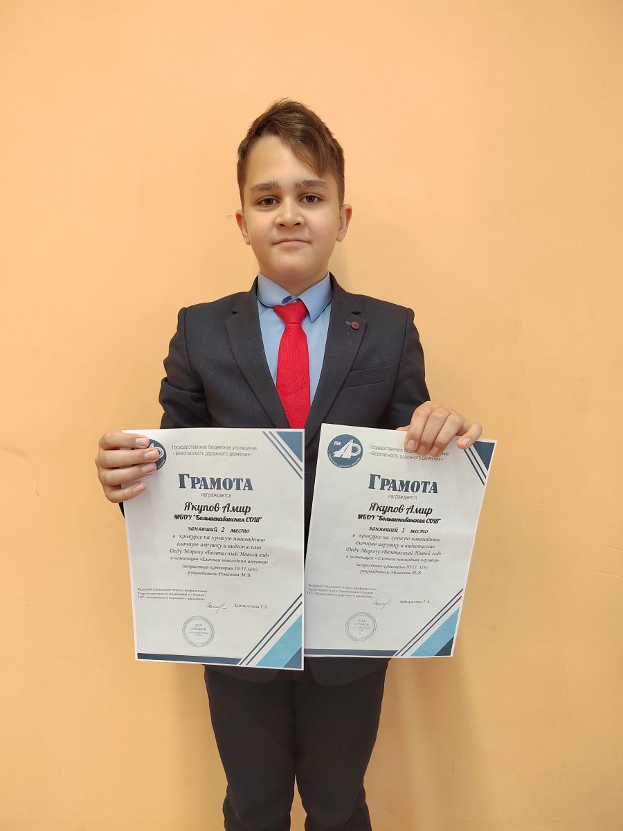 1. Каримову Язилю 1 А класс в номинации "Добрый светофор"- 1 место