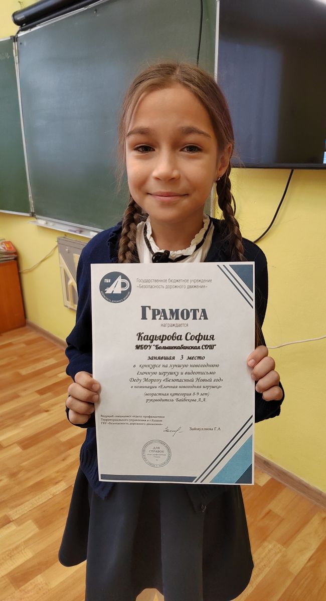 5. Кадырову Софию 3 Б класс в номинации "Креативная елочка"- 3 место