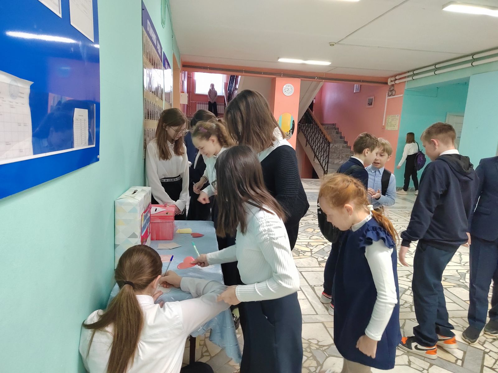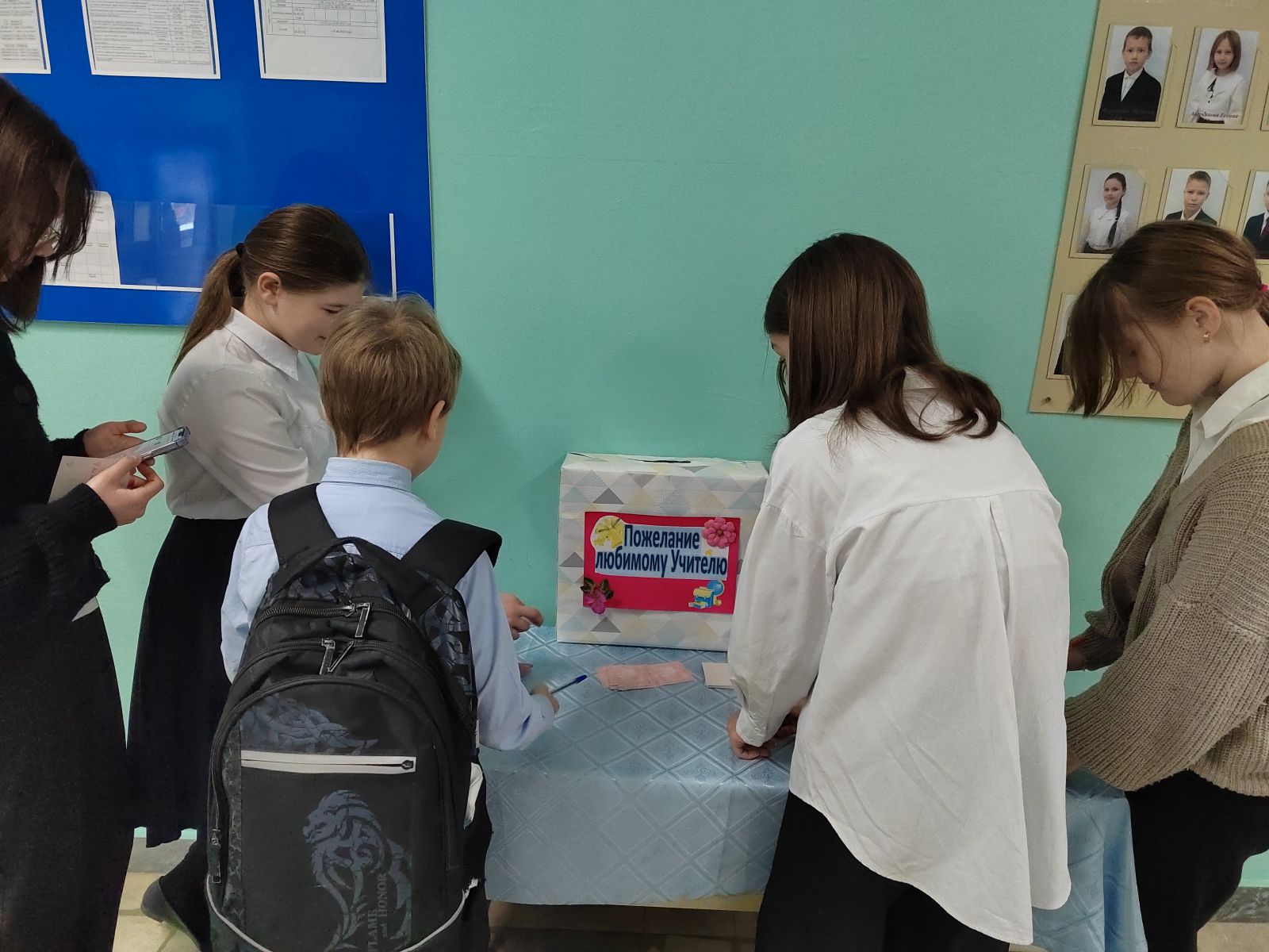 Так, в рамках акции «Пожелания любимому Учителю» активисты школы организовали поздравительную почту, чтобы любой желающий мог написать любимому учителю.