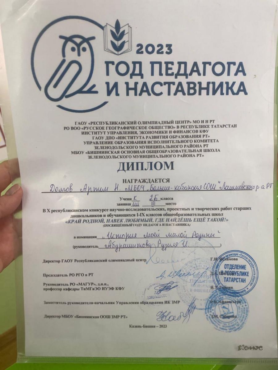 Поздравляем Долгова Артема с 3 местом в республиканском конкурсе "Край родной, навек любимый, где найдёшь еще такой"