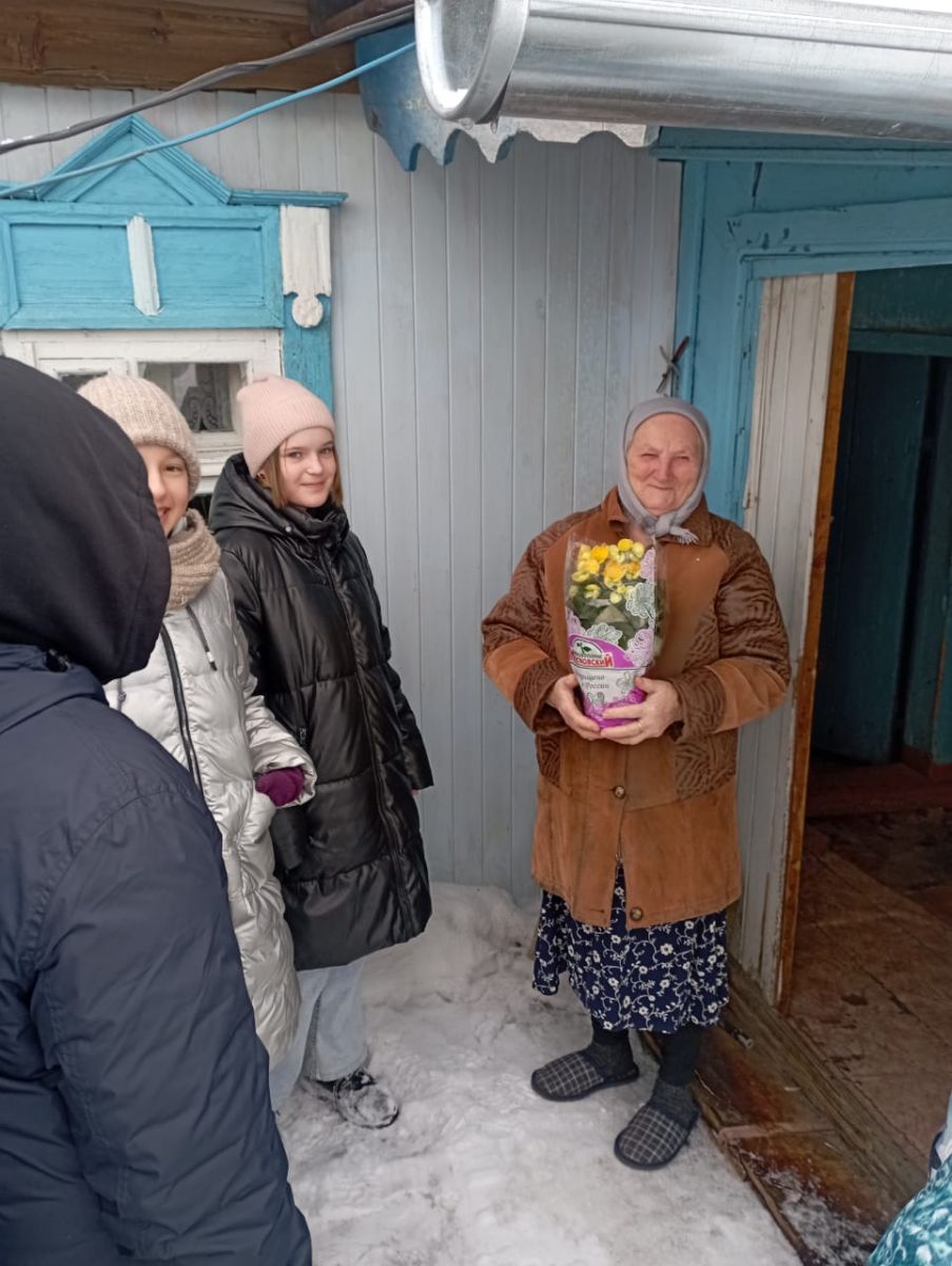 Опубликовано: 07.03.2023Ученики 4 и 7 А класса пожелали женщинам весеннего настроения , тепла, побольше радостных минут в жизни . Ветераны были очень тронуты вниманием детей и благодарили их за приятные минуты общения.