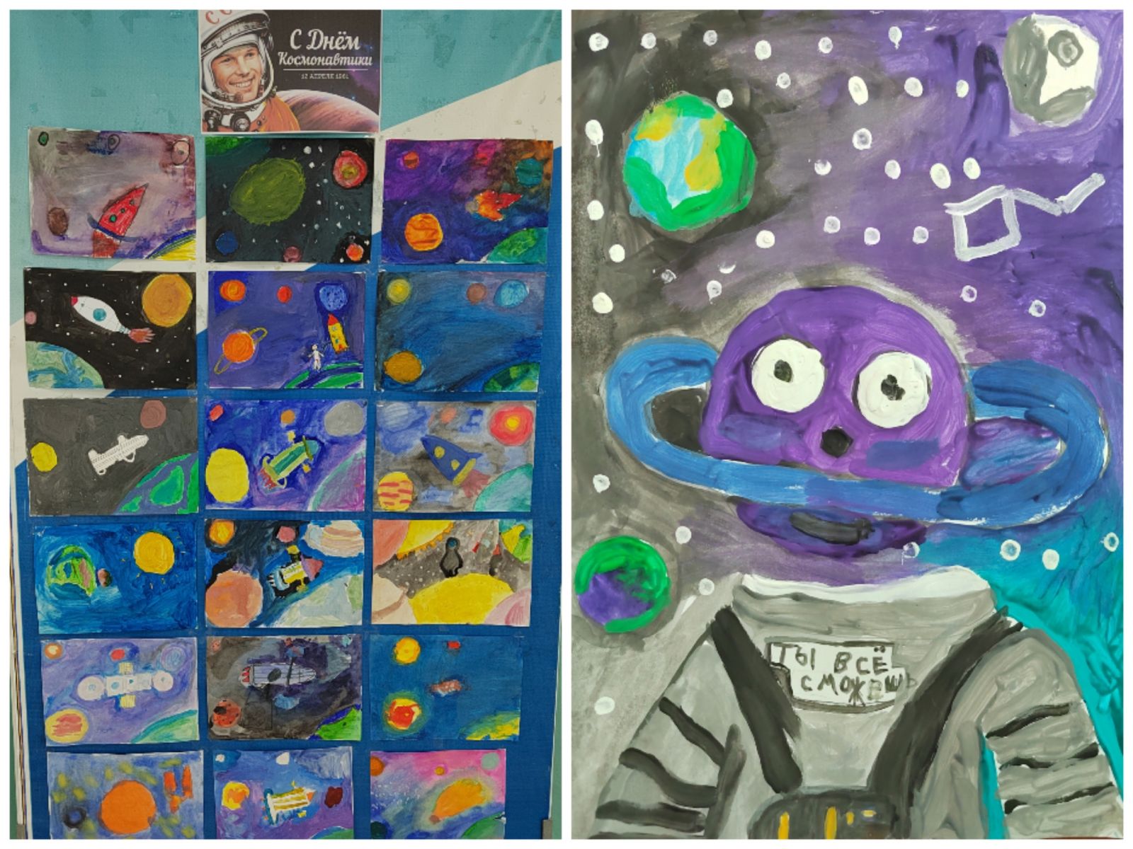 Была организована выставка рисунков , посвященная Дню Космонавтики, в которой ученики активно приняли участие. Выставка популяризует достижения отечественной космонавтики, содействует детскому художественному творчеству, а также воспитывает чувство патриотизма.