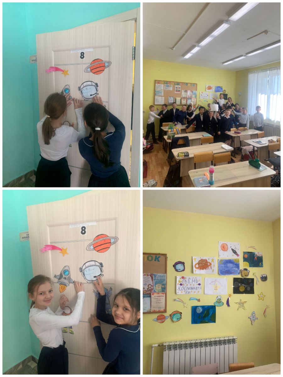 3 Б класс отметил День Космонавтики, рисуя и украшая класс на переменах.