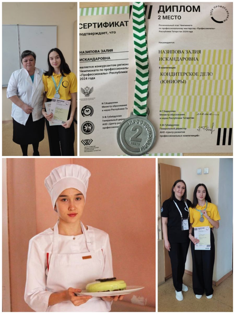 Опубликовано: 07.03.2024У нас серебро! Поздравляем Назипову Залию и Ахметову Диляру Рамильевну с завоеванной серебряной медалью на чемпионате РТ "Профессионалы" в компетенции "Кондитерское дело"! В серьёзной борьбе с соперниками из других городов Татарстана нашей участнице удалось продемонстрировать все свое мастерство в выполнении конкурсных заданий: приготовлении песочного печенья, ягодного мусса, трюфелей и других кулинарных изысков. Поздравляем! Желаем следующим конкурсантам таких же успешных выступлений на Региональном чемпионате "Профессионалы -2024".