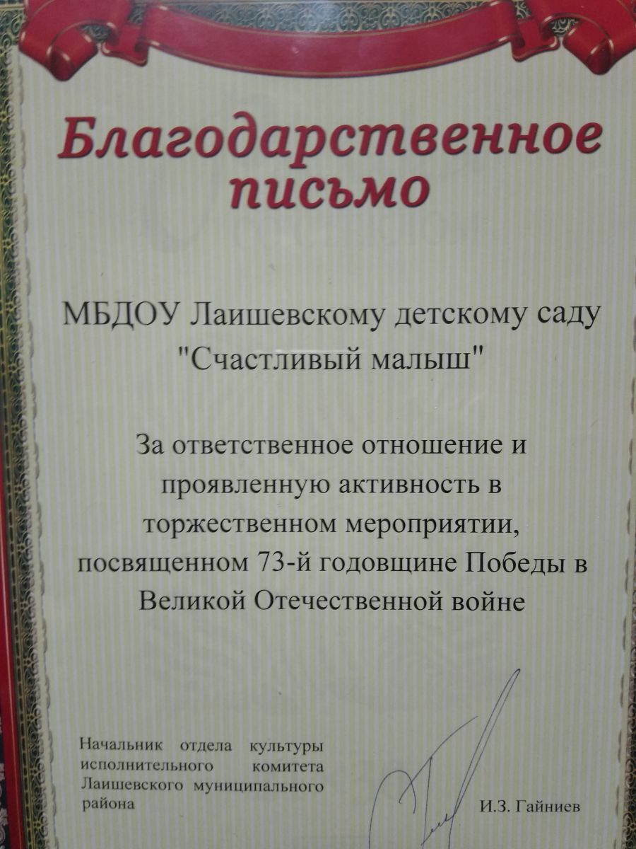 | Короткое название: | МБДОУ Лаишевский детский сад "Счастливый малыш" |