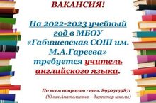 ВНИМАНИЕ! ВАКАНСИЯ В МБОУ "ГАБИШЕВСКАЯ СОШ ИМ. М.А.ГАРЕЕВА"!