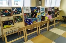 В МБОУ "Габишевская СОШ им. М.А.Гареева" открылась выставка рисунков "Величие и красота Вселенной", приуроченая ко Дню Космонавтики.