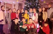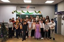 Учащиеся начальных классов МБОУ "Габишевская СОШ им. М.А.Гареева" на открытии Новогодней ёлки на базе культурно-спортивного центра.