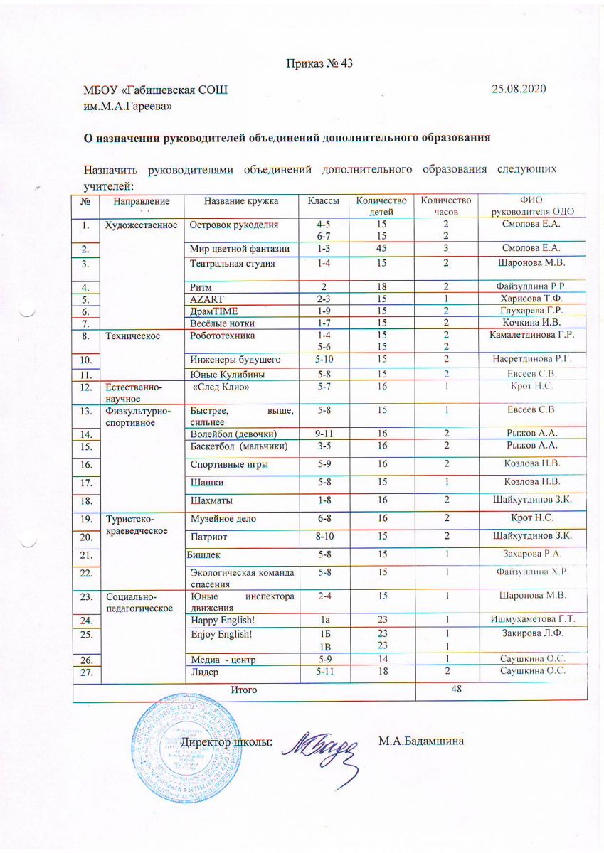 Приказ о назначении педагогов ОДО