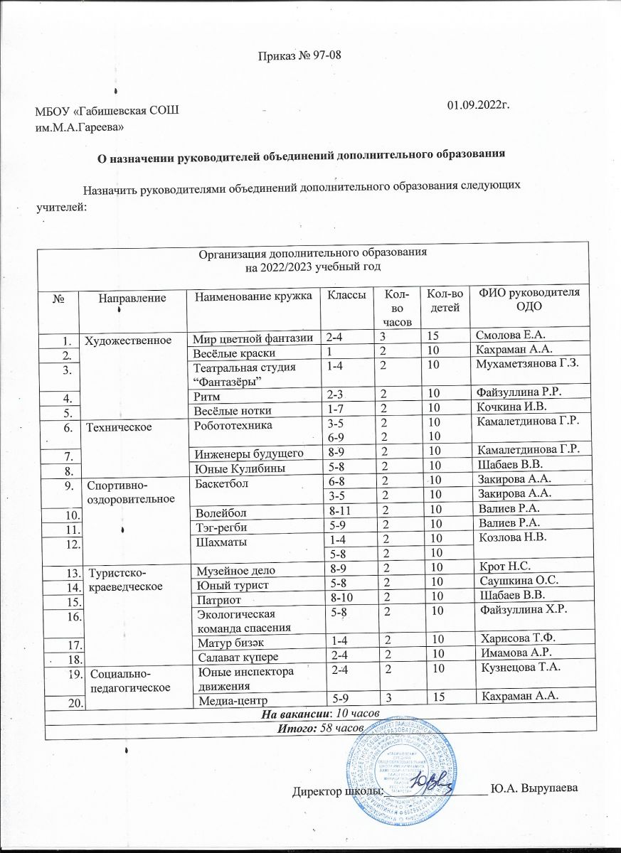 Приказ о назначении педагогов ОДО 2021-2022