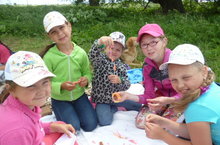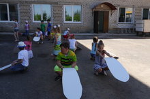 В пришкольном лагере для детей организована веселая спортивная эстафета.