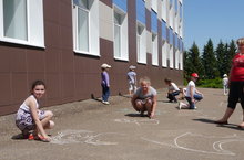 В пришкольном лагере прошел конкурс рисунков на асфальте «Будь здоров» 09.06.2015