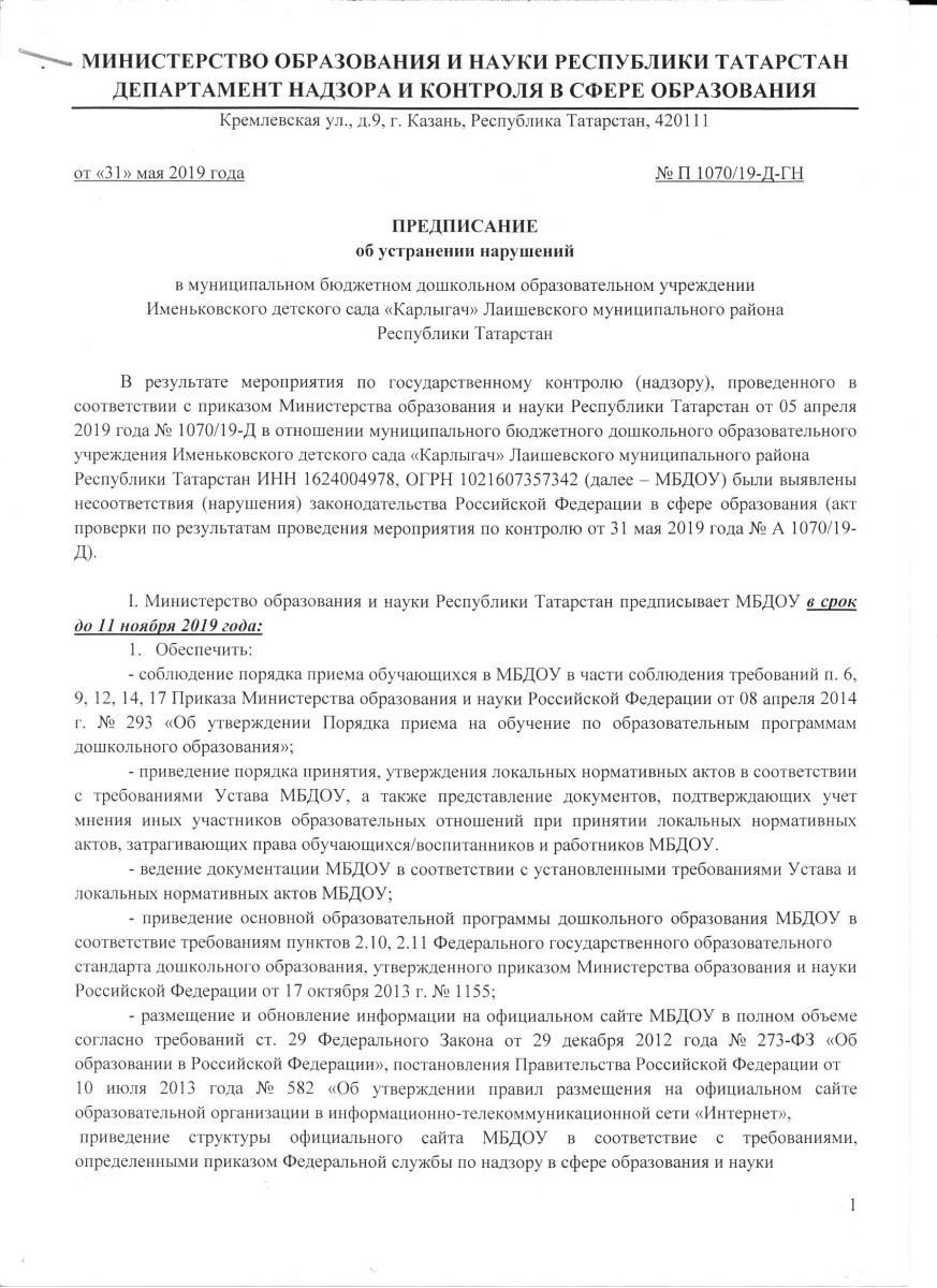 Предписания органов, осуществляющих государственный контроль/ Дәүләт контролен гамәлгә ашыручы органнар күрсәтмәләре
