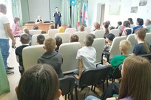 Инспектор группы организации службы ОСБ ДПС ГИБДД МВД по РТ Ахмадуллин А. А. провел инструктаж по безопасности дорожного движения в период летних каникул. Он так же познакомил с правилами езды на велосипедах мопедах, скутерах и др