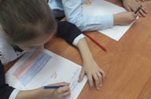 Ребята из Именьковской школы пишут письма нашим солдатам. Идёт добровольческая акция по сбору гуманитарной помощи мобилизованным.