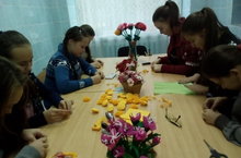Во время осенних каникул в МБОУ "Именьковская СОШ" работают кружки. Сегодня учащиеся посетили кружок "Рукодельные фантазии". Где девочки начали готовить подарок ко дню мамы.