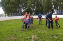 Сегодня в пришкольном лагере прошла спортивная эстафета "Веселые старты". Дети, разбившись на 2 команды "Ястребы" и "Орлы", с удовольствием приняли участие в этом соревновании. Победителем со счетом 5 : 3 стала команда 7 класса "Ястребы".