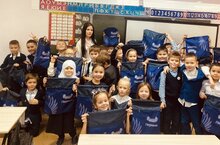 Ученикам подарили атрибуты - значки и красивые сумочки!