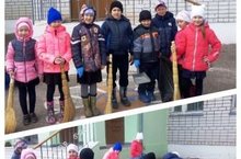 Учащиеся начальных классов Кирбинской школы первыми вышли на уборку территории школы. Они работали с удовольствием.
