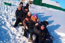 Сегодня ученики 8-9 классов провели "День здоровья". Катались на лыжах и ледянках с горы.