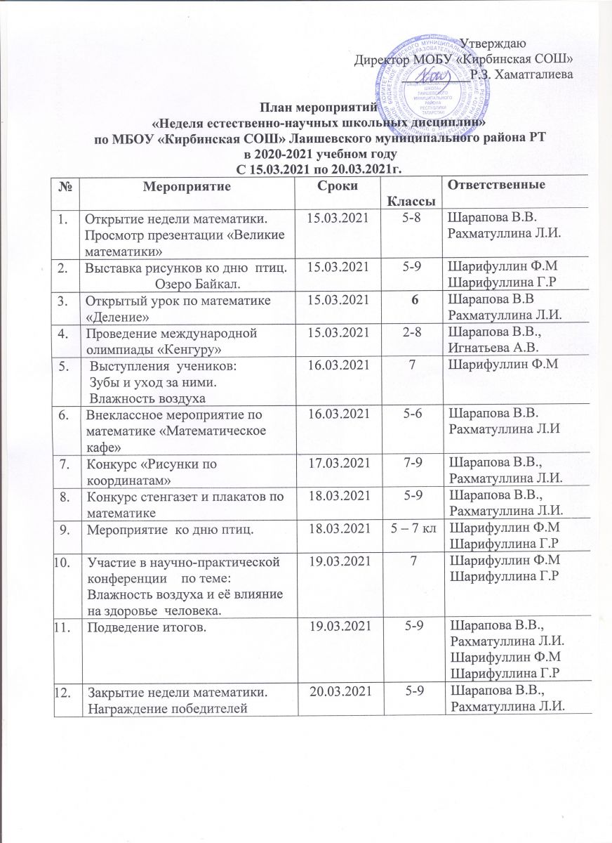 План мероприятий "Неделя естественно-научных школьных дисциплин"