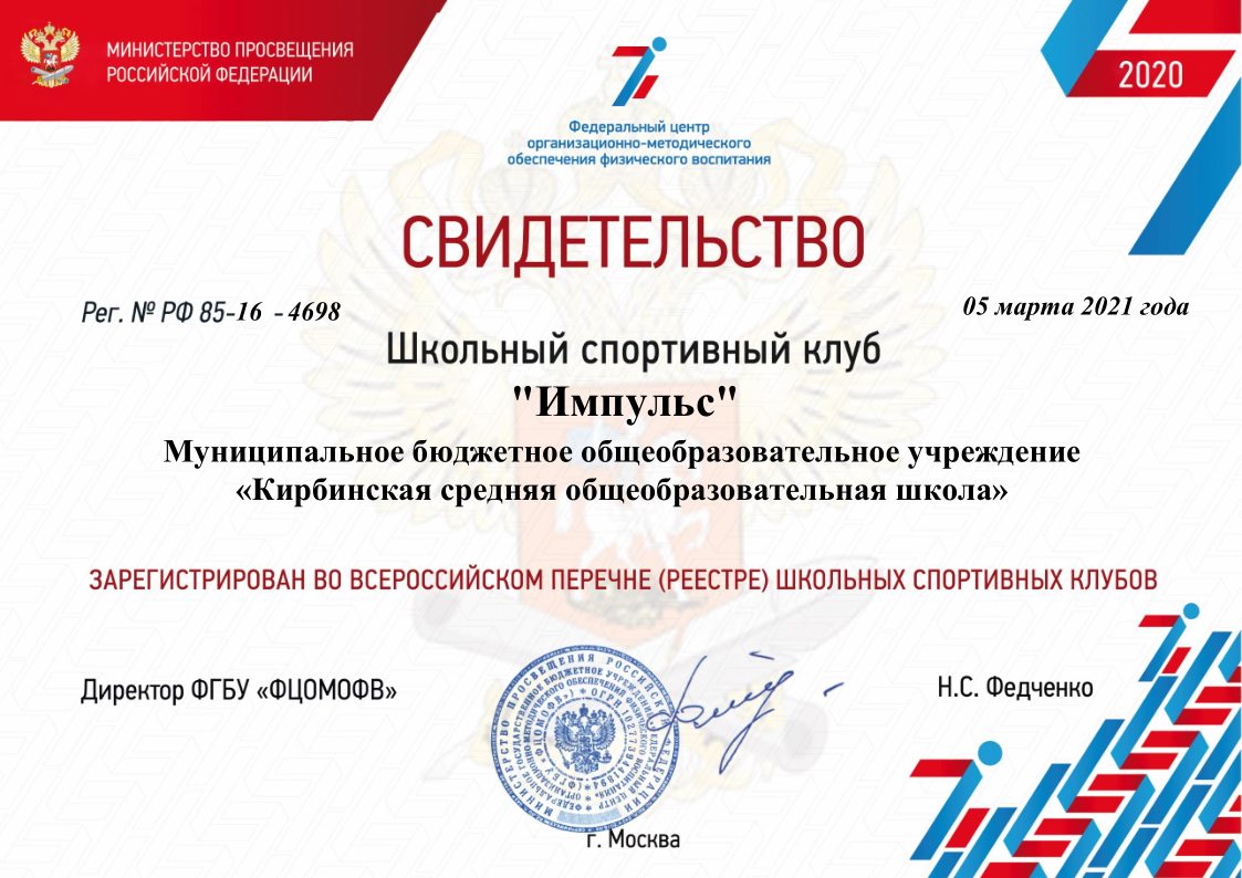 | Короткое название: | МБОУ "Кирбинская СОШ" |