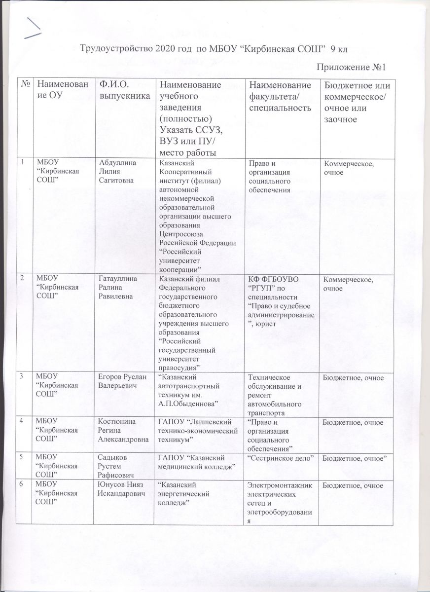 Трудоустройство выпускников/Чыгарылыш класс укучыларының урнашуы