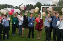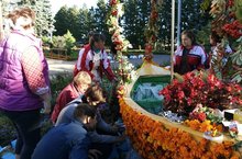 Педагогический коллектив школы-интернат работает над цветочным шедевром, который завтра будет участвовать в конкурсе, посвященном празднованию Дня города и юбилею Лаишевского района.