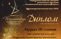 трио домристов "Рассвет" - Галиев Дамир, Куркина Вероника, Замалиев Карим - Лауреаты III степени (преподаватель Теплякова Т.Д.).
